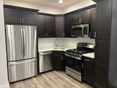 This modern and move-in ready 2-bedroom apartment is located just minutes from downtown Lawrence. Enjoy a sleek open-concept layout with tiled floors, high ceilings, and updated finishes throughout. The kitchen features stainless steel appliances, quartz countertops, and dark wood cabinetry.