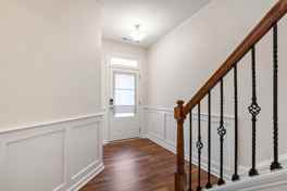 Upstairs, the staircase transitions to carpet for added comfort, leading to three well-sized bedrooms and two full bathrooms. The home also includes a washer and dryer for added convenience.