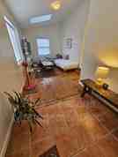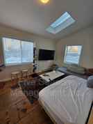 This bright and airy second floor unit features a sun-filled living room with skylights, wide plank pine, a cozy kitchen with built-in seating. One off-street parking space is included.