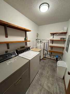 Inside, you’ll find an open kitchen layout with a dedicated laundry room just off the kitchen, adding ease to everyday living. The living room is located down the hall from the kitchen, creating a nice separation of space and a more home-like feel. A sliding glass door leads from the kitchen area to a private back porch, perfect for enjoying the outdoors.