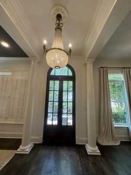 This picture perfect home sits on a private no-outlet cul-de-sac surrounded by the character of Olde Towne. The home features a study with bead board ceiling, formal living room, formal dining room and family room. There is solid oak custom flooring, antique front doors, 11' antique cypress interior doors from New Orleans, plantation shutters, 12' ceilings, surround sound and two fireplaces with custom mantles. The kitchen has quartz countertops, center island and stainless-steel appliances. It opens onto the family room that has a wet bar and a grand staircase with a handmade Italian iron banister.