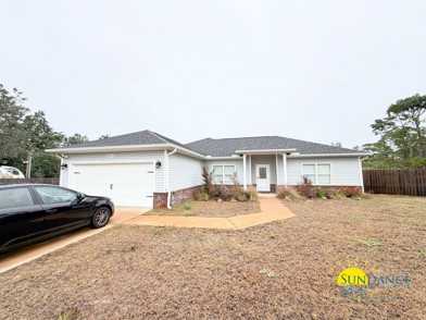 Located in beautiful Gulf Breeze just off Highway 98, this charming 3-bedroom, 2-bathroom home features a 2-car garage and driveway parking and is truly a must-see! Step inside you will be greeted with the dining area that opens into a bright, spacious living room. The home also includes two 75-inch LG TVs (as-is). Durable LVP flooring runs throughout, offering both style and easy maintenance. The kitchen comes fully equipped with modern appliances, including a refrigerator with ice maker, dishwasher, electric stove and oven, and a mounted microwave—perfect for everyday convenience. The primary suite offers comfort and luxury with dual vanities, granite countertops, a walk-in closet, and both a stall shower and a walk-in shower. Two additional well-sized bedrooms and a full bathroom provide plenty of space for family or guests. A dedicated laundry room includes a washer and dryer for your convenience. Step outside to enjoy the open patio, serene natural views, and a fully fenced yard—ideal for relaxation or entertaining. The home also features a security system (as-is).
