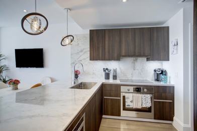 Enjoy sweeping views in a new fully furniture designer unit. 1BD/1BA at amenity-rich The Parklane on Hermann Park. Beautifully remodeled by a skilled builder/developer, this 798SF high-floor Condo impresses with wide-plank floors, recessed LED lighting and magnificent eastern exposures. Enjoy an updated kitchen filled with custom cabinetry, new slab counters, bar seating, and Bosch appliances. The large, sun-splashed living room opens to a wide balcony perfect for al fresco entertaining alongside open views that stretch to the Downtown skyline. The king-size bedroom offers balcony access and a fantastic custom closet, and the spa bathroom features a walk-in shower, floating vanity, and premium stone finish. An in-unit stacked Bosch washer-dryer adds convenience to this park-side retreat. 24-hour attended lobby, fitness center, pool, tennis, storage, parking with EV charging, shuttle service to TMC, and light rail. Outstanding location.