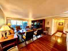 Fully furnished two bedroom two bath Villa Miradero East condo available for a long term rental! This highly upgraded villa is on the ground floor with oversized patio doors that open up and over look the lush grounds. The villa has an open floor plan that is bright and open. The kitchen has been updated with granite countertops, stainless steel appliances(oversized refrigerator,electric stove and oven,dishwasher,microwave), custom cabinets with lighting, and opens up to the main living area. Both bathrooms have been nicely done. The hall bath has a shower and plenty of built ins. The bathroom off the main bedroom has a separate tub and shower and dual laves. The main bedroom also has plenty of closet space. There is an abundant amount of storage and cabinets throughout the villa. The uni
