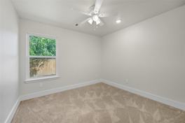 This cozy new construction, nestled in a quiet neighborhood, features three bedrooms and two bathrooms on a spacious 0.31-acre lot, complete with a large single-car garage. It boasts German-engineered wood flooring, modern tiles in all wet areas, and plush carpeting in the bedrooms. The living room and master bedroom are accentuated with tall ceilings, contributing to the home's airy ambiance. The residence includes modern upgrades like recessed lighting and ceiling fans throughout. Its open floor plan seamlessly connects the living, dining, and kitchen spaces, making it perfect for hosting. The kitchen comes with granite countertops, custom cabinetry, Samsung stainless steel appliances, an expansive walk-in pantry, and a substantial island topped with a butcher block. Other highlights include a dedicated walk-in laundry room and ample walk-in closets.