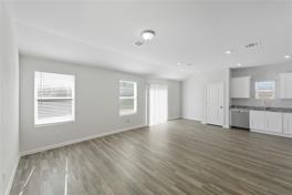 The modern kitchen with spacious countertops is ideal for cooking and entertaining, while the open living room provides a warm and inviting space for family gatherings. Step outside to enjoy a fenced backyard, perfect for pets, play, or weekend barbecues.