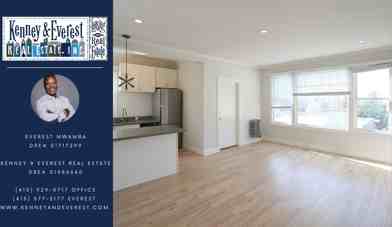 Modern, remodeled second floor 1BR/1BA just north of the western tip of Oakland's Lake Merritt. Floors are hardwood except in bath, heat is steam. Living room is bright with a large bank of three windows. Kitchen is C-shaped, has all stainless appliances including gas stove and dishwasher. Bedroom has a closet with sliding mirror doors. Bath is standard with shower-over-tub.