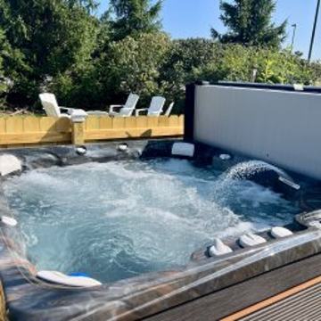 Come and relax in the hot tub!! The home has an open concept living area and eat in kitchen to visit with friends and family after a long day at the beach or shopping. There are 2 spacious bedrooms with queens size beds and 1 bedroom with a full size bunk bed. There are laundry facilities in the basement. You can also enjoy grilling on the back patio or talking and laughing by the fire. Whether it's relaxing on the beach or fishing, Lake Michigan is just a hop, skip and a jump.