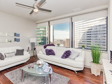 This iconic high-rise offers a blend of contemporary design and exceptional urban living. The spacious apartments feature open-concept floor plans with large windows, filling each home with natural light and offering stunning city views. Inside, you'll find modern finishes such as hardwood floors, gourmet kitchens with stainless steel appliances, and sleek, spa-inspired bathrooms. Every detail is thoughtfully designed to provide both style and comfort.