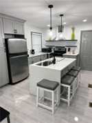 The spacious kitchen island serves as the perfect gathering spot, while the seamless layout provides both function and flow. Every detail has been updated to create a clean, modern, and inviting living experience.