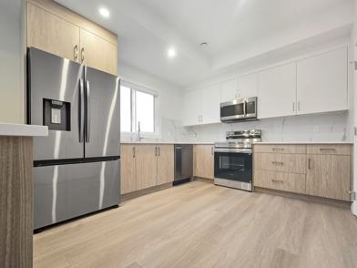 - Modern kitchen with stainless steel appliances and efficient layout