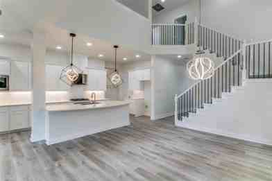 Welcome to 523 Paddock Way, a beautifully maintained David Weekley home available for lease in the desirable North Hills Estates neighborhood of Irving—located just behind the prestigious North Hills School. This spacious two-story single-family home offers 4 bedrooms (2 downstairs and 2 upstairs) and 3 full baths, designed for comfortable living and easy entertaining. High ceilings and luxury vinyl flooring throughout create a warm, inviting feel as natural light fills the open layout. The modern kitchen features quartz countertops, a gas cooktop, a functional island, and custom cabinetry—ideal for everyday meals or hosting gatherings. The connected dining and living areas keep the home’s main floor open and social. The primary suite, privately located on the first floor, includes a serene bath with a separate extended shower and updated lighting. A second bedroom and full bath downstairs offer flexibility for guests, an in-law suite, or a home office. Upstairs, you’ll find two additional bedrooms, one full bathroom and a large game room, perfect for recreation or movie nights. Additional highlights include: No carpet anywhere in the home Fresh interior paint and new light fixtures Recessed lighting throughout Epoxy-coated garage floor