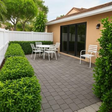 appliances, providing a sleek and sophisticated look. The private patio area is great for enjoying your morning