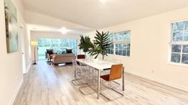 This Extended Capri floor plan has the unique situation of being located on a corner with a tremendous view of open green space! Extremely quiet and close to the park just north of Riverwalk Circle there is a peaceful view from every window! This home features the sought after 'expanded' air conditioned space off of the dining area. The kitchen opens to the Great Room with cathedral ceilings and dining area, perfect for entertaining. Luxury vinyl plank flooring is throughout the whole home. There is a screened patio overlooking the lake and lush landscaping, an ideal spot for early morning coffee or winding down with a glass of wine while watching the sun set. The principal bedroom has an en suite bathroom with walk in shower and double sinks, large walk in closet.