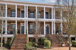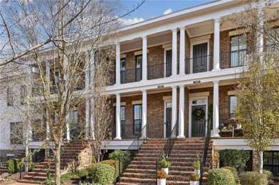 THE BEST LOCATION IN WALKABLE DOWNTOWN ALPHARETTA. Nestled Behind the Green Space on Alpharetta’s prettiest tree lined streets with Double Balconies in the heart of Downtown Alpharetta's City Center and Avalon!!. This amazing 3 bedroom townhome has a spacious open floorplan with natural Stone detail around fireplace, hardwood floors, 10'ceilings in the living and kitchen areas and a sunroom great for an office. Kitchen has an abundance of cabinets with soft close doors/drawers, Stainless Steel Appliances, Large island, custom pantry and quartz counters. Large master suite with custom Brick accent wall, balcony for morning coffee, walk in custom closet and an enormous walk in shower with 3 shower heads. ELEVATOR READY! All Closets are custom fitted. as an added bonus the home has ceiling mounted SONOS speakers! Beautifully appointed with Great Space and desirable features making this the perfect move in ready home for empty nesters or downsizers looking for life in the Stroll Zone of all the shops and restaurants downtown Alpharetta has to offer. Ready for Move in!