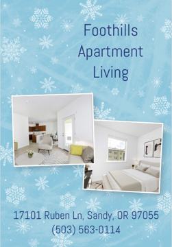 Foothills Apartment Living 17101 Ruben Ln, Sandy, OR 97055 (503) 563-0114 Enjoy our well appointed apartments homes with our wonderful location that will suit your lifestyle. From the moment you walk in the door, you'll feel the comfort and security that makes residents happy to call us home. Meticulously groomed grounds and dedicated staff contributes to a higher standard of living. Details: 2 Bedroom, 2 bath Townhome Rent - $1895 Deposit - $500- One Months Rent Utilities - RUBS (water, garbage, sewer) Lease Types – 12 Month Leases Available Pet Policy – Pet Policy up to 2 pets per unit Apartment Features: Complimentary WiFi Stainless Steel Appliances Wood Plank Flooring Full Size Washer and Dryer Double Insulated Walls 9' Ceilings Large Picture Windows Walk in Closets* Walk in Showers* Air Conditioning Community Features: Pet friendly Ample, Open Parking and Assigned Parking 24/7 Emergency Maintenance Dog Wash Station Friendly and Responsive, On-Site Management Online Rent Payment Options Onsite Maintenance and Management Cable Ready Units Non-Smoking Property Neighborhood: Parks: Tickle Creek Trail, Salmon Creek Park, Sandy River Park Schools: Sandy High School, Kelso Elementary School, Sandy Spanish Immersion Childcare Shopping: Grocery Outlet, Bi-Mart, Safeway Restaurants: Scooters Restaurant, Tailgate Inn Restaurant & Saloon, Boring Brewing Co. Application Process: Thanks for your interest in Foothills Apartments Living If you are interested in applying, please apply ONLINE (www.livefoothills.com). Applications for can also be dropped off at my main office: 17101 Ruben Ln, Sandy, OR 97055 At time of application: Proof of income is required (see Rental Criteria for details) and a $20 background check fee via check or money order to: Foothills Apartment Living. All applications must be submitted in person or mailed in (17101 Ruben Ln, Sandy, OR 97055). The application/background check process takes up to 72 hours to complete. Apply online at: : https www livefoothills com Call : (503) 563-0114 For more info or to view please call @ (503) 563-0114 Professionally managed by Commercial and Residential Management Group (CRMG). *Dates and pricing subject to change *Some floorplans may not have walk in closets Contact us to schedule a showing.