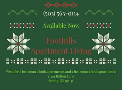 Thanks for your interest in Foothills Apartments Living If you are interested in applying, please apply ONLINE (www.livefoothills.com). Applications for can also be dropped off at my main office: 17101 Ruben Ln, Sandy, OR 97055 At time of application: Proof of income is required (see Rental Criteria for details) and a $20 background check fee via check or money order to: Foothills Apartment Living. All applications must be submitted in person or mailed in (17101 Ruben Ln, Sandy, OR 97055). The application/background check process takes up to 72 hours to complete. Apply online at: : https www livefoothills com