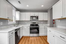 • Spacious kitchen with plenty of cabinet storage, white countertops, and stainless steel appliances