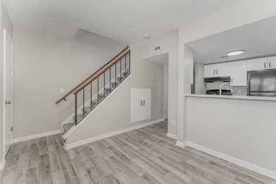 Our spacious, 2-bedroom 1.5-bathroom townhouse-style units feature modern essentials such as a refrigerator and electric range stove. Our units vary in style - showcasing carpeted and LVP vinyl flooring, and black appliances. Other units contain washer and dryer hookups, and white appliances.
