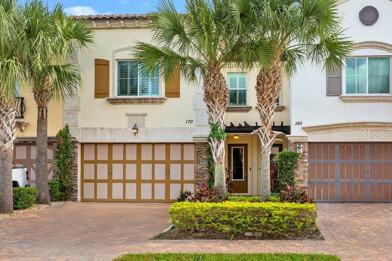 This beautifully appointed 2018 townhouse is located in the highly sought-after Binks Pointe, a luxury, gated townhome community located next to the Wellington National Golf Club. This home offers 3 bedrooms, 2.5 baths, a 2-car garage, fenced yard, covered patio plus a spacious balcony. Showcasing a cozy, welcoming interior, the light-filled home features beautiful crown molding and plantation shutters, plus luxury vinyl plank flooring throughout the second floor. The upgraded kitchen offers quartz countertops, stainless appliances, and a large peninsula with seating, perfect for entertaining. Upstairs includes three bedrooms, a loft, and a serene primary suite with two fully-custom walk-in closets, a spa-like bath, and a private balcony overlooking lush landscaping. Additional highlights include impact windows throughout, an upstairs laundry room with ample storage, under-stair closet, and garage loft storage. Enjoy a covered patio, fenced yard, and close proximity to the community's heated pool, clubhouse, fitness center, and recreation facilities. Ideal location near A-rated Binks schools, equestrian venues, medical facilities, shopping, and major routes.