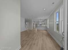 This stunning 4 bedroom home features an open, inviting floor plan with durable LVP flooring throughout the main living areas. The kitchen boasts granite countertops and comes equipped with an electric range, dishwasher, and microwave. It flows seamlessly into the bright breakfast area and spacious living room. The first-floor primary suite is a true retreat with a spa-like bath featuring dual vanities, a large tiled shower, and a generous walk-in closet. A main-level office is perfect for working from home. Upstairs, you'll find three additional bedrooms, two full baths, and a versatile unfinished storage area. Step out onto the covered porch and enjoy breathtaking views of the golf course.