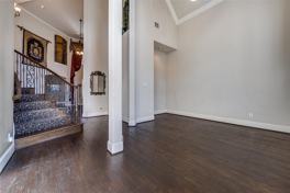 3-bed, 2.5-bath Valley Ranch home with a private pool and spa. Floor-to-ceiling windows and vaulted ceilings bring abundant natural light. Upgrades include hand-scraped hardwood floors, plantation shutters, custom walk-in closet by Closets By Design, designer iron chandeliers, and a dramatic wrought-iron spiral staircase. Kitchen features custom glass-front cabinetry and window treatments. Primary bath offers a large jetted tub and separate shower. Media room with built-in speakers and whole-home audio. Landscaped backyard with antique courtyard fountain. Located 1.3 miles from major shopping, dining, parks, coffee, and Home Depot; 1.5 miles to Target, Kroger, and MacArthur Park; 7.7 miles to DFW Airport. Easy access to 635, President George Bush Turnpike, and 114.