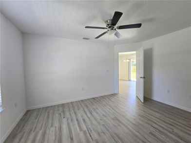 This 3 year old construction 3 bedroom, 2 bath, 1 car garage is nestled on a corner lot only minutes from downtown Ocala and close to Tuscawilla Park. The home is a split plan layout and features luxury vinyl plank throughout the entire home. The kitchen offers granite countertops and stainless steel appliances as well as an ample number of soft close cabinets and drawers. Access to the one car garage with washer and dryer hookup is located at the end of the kitchen. Master bedroom features a walk in shower, granite countertop vanity, walk in closet and ceiling fan with lighting. The two additional bedrooms mirror one another and also have ceiling fans with lighting. Fenced in backyard for additional privacy.