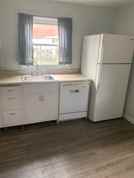 2 bedroom, huge kitchen with dishwasher, grey wood style flooring throughout, rear courtyard