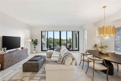 Offered turnkey furnished this stylish 2 Bedroom + Den fourth-floor residence at Eleven Eleven Central places you at the center of Naples' most exciting live-work-play district. Designed with a clean-modern aesthetic, the home welcomes you with an open and airy layout, thoughtfully curated furnishings, and a great room that flows out to a private balcony overlooking the privately landscaped grounds. The gourmet kitchen features quartz countertops, natural gas appliances, an oversized island, and fully stocked essentials - making day-to-day living effortless from the moment you arrive. The spacious primary suite offers a king-size bed, walk-in closet, and a well-appointed bath with dual sinks and a glass-enclosed shower. A private guest bedroom and separate full bath provide the ideal setup for visitors or extended stays. In addition to two bedrooms, the residence includes a spacious den that functions perfectly as a dedicated home office or flexible workspace - ideal for remote work, extended stays, or maintaining productivity while enjoying the season. Additional conveniences include in-unit laundry, gas grill, ample storage, and assigned parking in an enclosed, secure garage. Residents of Eleven Eleven Central enjoy access to an impressive collection of resort-style amenities, including a courtyard pool, fitness center, outdoor fire pits, cabanas, club room, rooftop sunset terraces, and a community shuttle to the beach. Located just minutes to 5th Avenue South, Baker Park, fine dining, galleries, and Naples' powder-soft Gulf beaches, this residence offers an exceptional seasonal experience with everything at your doorstep. Available for April-July 2026. Duration and dates flexible - please inquire for availability.