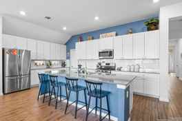 This home is beautiful and has plenty of room to entertain. The modern kitchen has an added built in bar and mini fridge. Ceiling fans are installed in the living room, four bedrooms and the bonus room. Cabinet and countertop has been added in the laundry room for a folding station. Covered backyard patio with your own private backyard fence line. Irrigation system in the front and backyard. The washer, dryer, refrigerator and security system with exterior cameras, door sensors and system control pad will stay, but tenant will need to set up new security service if they choose to use. The neighborhood HOA has a clubhouse with a gym, pool and playground. These amenities are within walking distance of the home.