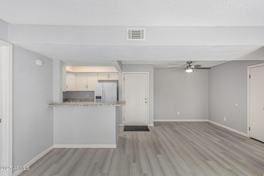 Discover all the charm of this lovely ground-level unit! The interior boasts an open and inviting layout with wood-look flooring, abundant natural light, sliding doors to the patio, and neutral tones throughout. Whip up your signature dishes in the nicely sized kitchen, showcasing a tray ceiling, ample cabinetry, a spacious peninsula with a breakfast bar, and built-in appliances. The tranquil main bedroom promises a good night's sleep and hosts a walk-in closet, a full ensuite, and a private exit. Enjoy your morning brew under the covered patio and remember to visit the community's pool and spa for a relaxing time! Check it out before it's too late!