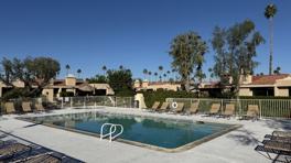 Nestled in the small gated community of Monterey Sands in beautiful Palm Desert, this 2-bedroom, 2-bath single-story property offers the perfect blend of comfort, convenience, and resort-style living. The spacious living room opens seamlessly to a private patio with views of the greenbelt and lush landscaping—ideal for morning coffee or evening gatherings under the stars. The living room features a cozy fireplace and sliders leading to a large outdoor patio with spectacular mountain views and steps away from the pool and spa! The primary ensuite features dual sinks with enclosed shower and a separate tub. Enjoy an updated kitchen with brand new stainless steel appliances, a two-car garage and easy access to community amenities. Located just minutes from El Paseo’s world-class shopping and dining, this small quiet enclave boasts two full size pools, two spas, and two tennis and pickleball courts in a park like setting for your enjoyment.