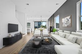 Welcome to your dream home! This architecturally designed modern residence combines luxury and functionality, making it the perfect sanctuary for today’s discerning homeowner. Step inside to discover high ceilings that create an expansive feel throughout the main living areas. Oversized windows flood the space with natural light, enhancing the home’s airy atmosphere. Elegant accent walls add a touch of sophistication, seamlessly integrating modern design elements with warm, inviting tones. The heart of the home boasts a stunning waterfall island that serves as both a culinary workspace and a stylish gathering spot. The modern kitchen features top-of-the-line Bosch appliances, ensuring a seamless cooking experience. Situated on a large lot, the property offers plenty of outdoor space for entertaining, or gardening. Enjoy views from the second-floor wrap-around balcony, perfect for sipping morning coffee or unwinding in the evenings.