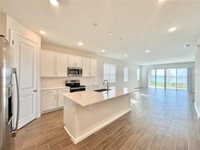Discover this charming, energy-efficient 4-bedroom, 2-bath Richmond home with stunning lake views of Grassy Lake, located in the beautiful Eden Hills community. Offering 1,910 sq. ft. of living space, this thoughtfully designed home features an open floor plan that seamlessly connects the kitchen and great room. The kitchen is complete with a center island, breakfast bar, 42" cabinets, quartz countertops, stainless steel appliances, and a spacious walk-in pantry. Natural light pours through the 8 ft. sliding glass doors, leading to a 13x17 covered lanai—perfect for relaxing or entertaining while enjoying peaceful lake views. The primary suite is located just off the great room and features a private en-suite with a barn door entry, dual sinks, walk-in shower, private water closet, and an expansive 7x9 walk-in closet. The split bedroom design offers added privacy. A guest bedroom (4th bedroom) with a 5x6 walk-in closet is situated off the foyer. Two additional generous-sized bedrooms, a guest bath with a tub/shower combo, and a utility room with a new washer and dryer are conveniently located off the kitchen. Outdoor Features: Enjoy serene Grassy Lake views with plenty of open space—ideal for families and pets. The community is surrounded by nature and offers easy access to Lake Alfred, Grass Lake, Lake Swoope, nearby boat launches, golf courses, nature trails, parks, and scenic orange groves. Location: Approximately 30 minutes to Disney World and LEGOLAND. Conveniently located between Orlando and Tampa with quick access to I-4 and nearby shopping. Tenant Liability Insurance: Required. Pets: Allowed! Schedule your private tour today!