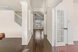 A BACKYARD PARADISE with POOL. As you enter the home, beautiful hardwood flooring carries you past the fireplace formal living room to the formal dining room and into the living and open kitchen. Your spacious owner’s suite with ceiling fan is complete with hardwood flooring and an en-suite bath featuring custom split dual vanity sinks, modern tiled walk-in shower, garden tub, and walk-in closet. The remaining 3 bedrooms all feature great closet space, plenty of natural light, and share a full dual vanity bath with a half bath on the main level. Easy access to shopping, restaurant, park and much more.