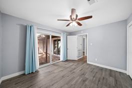 Beautifully appointed with large living area and open kitchen. Large primary bedroom, inside utility room and large garage. Stone accented fireplace, French doors, overlooks the tennis courts. Wood-look tile throughout, ceiling fans, stone patio with covered area.