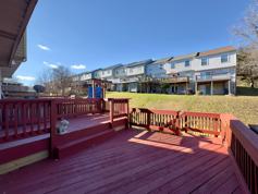 The kitchen is thoughtfully designed with LVP flooring, granite countertops, a tiled backsplash, and essential appliances including a refrigerator, stove/oven, microwave, and dishwasher. From here, a rear exit leads directly to the deck, ideal for outdoor dining or casual relaxation. Adjacent to the kitchen, the dining area continues the cohesive design with LVP flooring, neutral tones, and bright natural light.