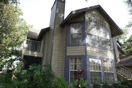 Welcome to this delightful 2-bedroom, 2-bathroom condo located in the Hidden Village community of Lake Mary. As you step inside, you'll find an inviting open floor plan that seamlessly connects the kitchen, living room, and dining area. The living room boasts a cozy wood-burning fireplace, soaring ceilings, and plenty of windows that fill the space with natural light. The dining area includes sliding glass doors that open to a private outdoor patio with extra storage space. The entire home is enhanced with laminate flooring. The community pool is just a few feet away from the unit.