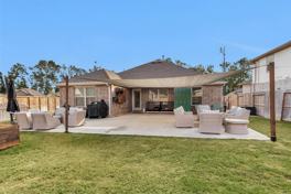 Immaculate home with many updates. This home boasts open plan living with an updated kitchen- quartz counters, gold hardware, SS appliances (gas range and oven) & pantry. The elegant dining area features a Shiplap wall. Living room with vinyl plank flooring throughout living areas. Quiet & private home office with double French door entry, wood paneled ceiling & built-ins. Primary suite at the back of the home with a huge shower. Split plan with 2 secondary bedrooms on the other side of the living areas. Resort-style backyard with sail cloth covering over extended patio with gas connection for a fire pit or grill. 50 Amp connection for a generator. Great curb appeal on a huge corner lot with a sprinkler system for easy maintenance. Planter boxes in the back yard for those with green thumbs. Storage shed too. The Highlands boasts an 18-hole golf course, pool, water park, lazy river, tennis & pickle ball court, fishing & kayaking, recreation fields & hike & bike trails.