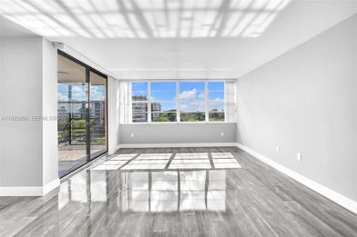 Lovely corner unit 2/2, 1260 SF. Tile & waterproof laminated flooring throughout the unit, open kitchen with central island, new appliances, quartz in counter-top, new baths w/Spanish shower style and glass doors, lots of closets & huge walking closet. Excellent views from apartment & easy access to parking spot, very close to building door. Storage room. Laundry facilities. This is a resort style 55+ community, centrally located, w/4 heat swimming pools, bike/jogging path, tennis/pickle-ball court. BBQ area, club house. Complex is gated with 24/7 security patrol. One occupant must be 55+ others 19+.