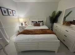 Beautifully updated first floor residence located in a gated community with guard entry, community pool, and ample guest parking. This light filled home features a stunning modern kitchen with sleek cabinetry, stainless steel appliances, and a quartz waterfall island with designer pendant lighting, opening to spacious living and dining areas. The primary suite offers a large walk in closet and a beautifully renovated bathroom with glass enclosed shower, while the secondary bathroom features updated finishes and a full tub. Enjoy indoor outdoor living with a private screened back patio and a welcoming front courtyard entry. Additional highlights include a separate laundry room, water included in the rent, and a well maintained community conveniently located near shopping, dining, A rated schools and major highways. Available after 1/31/2026.