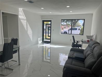 Newly renovated 2 bedroom 1 bathroom unit with modern kitchen, open floor plan, porcelain floors, impact windows and doors. Electric and water included in the monthly rent. Parking for 2 cars. Available to move in right away.
