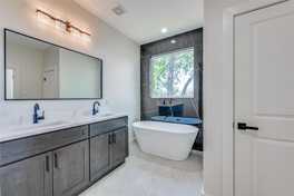 This a a gorgeous must see home in a sought after Dallas neighborhood near downtown Dallas it’s a hop skip and a jump from restaurants and nightlife. The home is surrounded by a beautiful wood fence with a metal security gate for privacy, comfort and security. Although this home does not have a garage it has an eye catching carport on the driveway along with additional uncovered parking. Once entering the home there is a spacious open concept floor plan allowing to see the complete first level at entry. There are two stunning primary bedrooms one is located on the first level and the other is located on the second level along with two additional bedrooms one on first level and the other one is on the second level. Home has four full bathrooms for complete convenience. This home has quartz countertops throughout and wood vinyl flooring each room complete with a ceiling fan for complete comfort. The home is modern black and white with wood accents to create a clean polished look. Check this one out before it’s gone!