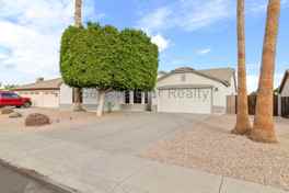 With great curb appeal, this home has a beautiful mature tree out front paired with low-maintenance desert landscaping, a 3-car garage, and covered entryway!