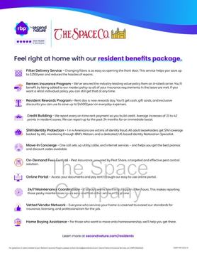 At The Space Company, we strive to provide an experience that is cost-effective and convenient. That’s why we provide a Resident Benefits Package (RBP) to address common headaches for our residents. Our program handles insurance, pest control, air filter changes, utility set up, credit building, and more at a rate of $55.95/month, added to every property as a required program. More details upon application.