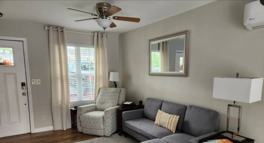 1 bed 1 bath home completely renovated from foundation up in 2024/2025. Living room/dining room/kitchen and large bedroom large enough for king size bed with ensuite bath. Luxury vinyl plank flooring throughout and all appliances will remain including washer/dryer combo. Heating/cooling is provided by electric mini-split units. Tankless water heater. Front porch and back deck for outdoor relaxing. Large yard with storage building. Located in central Burlington convenient to downtown, shopping and dining. Rent unfurnished is $995/month. Would be willing to rent fully furnished for $1145/month if desired. Utilities would be Duke Energy for electricity and City of Burlington for water/sewer/trash. Home is equipped with Ring security system if you want to activate it. Will allow 1 female cat spayed up to date on vaccines and flea preventative. NO SMOKING OF ANY KIND ALLOWED. Showing tours will start December 22nd.