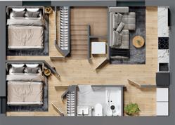 Our basement studios are Ideal for individuals or couples, offering an open living space, a fully equipped kitchen, 2 bedrooms, and a full bathroom, all designed for efficient and stylish living. All with private entries.
