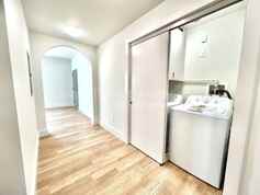 ✨Ground Floor 1 bedroom, 1 bathroom stainless steel appliances including a microwave, electric stove, dishwasher, fridge and Full size Washer and Dryer in unit. The apartment features beautiful quartz countertops, hardwood floors, ceiling fans, modern fixtures, bathtub and plenty of storage space. ✨