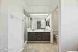 Nestled within the secure, guard-gated enclave of the Villages of San Jose, this charming home offers comfortable, maintenance-free living in a highly sought-after community. The neighborhood boasts lush, well-kept landscapes, a serene lake, a swimming pool, & pickleball/tennis courts, creating a perfect backdrop for leisurely strolls & an active lifestyle. The residence features a versatile, smart floor plan that can function as a 2 bedroom, 2 bath home w? an office, or easily convert to a full 3bedroom layout to suit your needs. Step inside to discover elegant wood flooring & classic plantation shutters throughout. A spacious family room, complete w/ cozy fireplace, provides a welcoming atmosphere & offers views of the large, private backyard & covered patio—ideal for relaxing or entertaining. The home is rounded out by a formal dining room, a convenient eat-in kitchen,& practical 2 car attached garage, all situated in a peaceful cull-de sac.