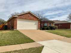 Adorable 3 BR, 2 BA single story with huge kitchen, sunlit living spaces and backyard with custom deck! Decorator colors, and luxury vinyl plank or tile flooring throughout most of the home. Large master suite with a large bedroom and bath with jetted tub, separate shower, walk-in closet and gorgeous, double-sink granite top vanity. Livingroom has gas fireplace and view of the backyard with covered porch, extensive deck and privacy fencing. Kitchen has white cabinets, stainless appliances and breakfast area. Large bedrooms, dining area, spacious entry, plus an extra-large utility room. Beautiful home in a convenient location with excellent schools. Refrigerator, washer and dryer are included.